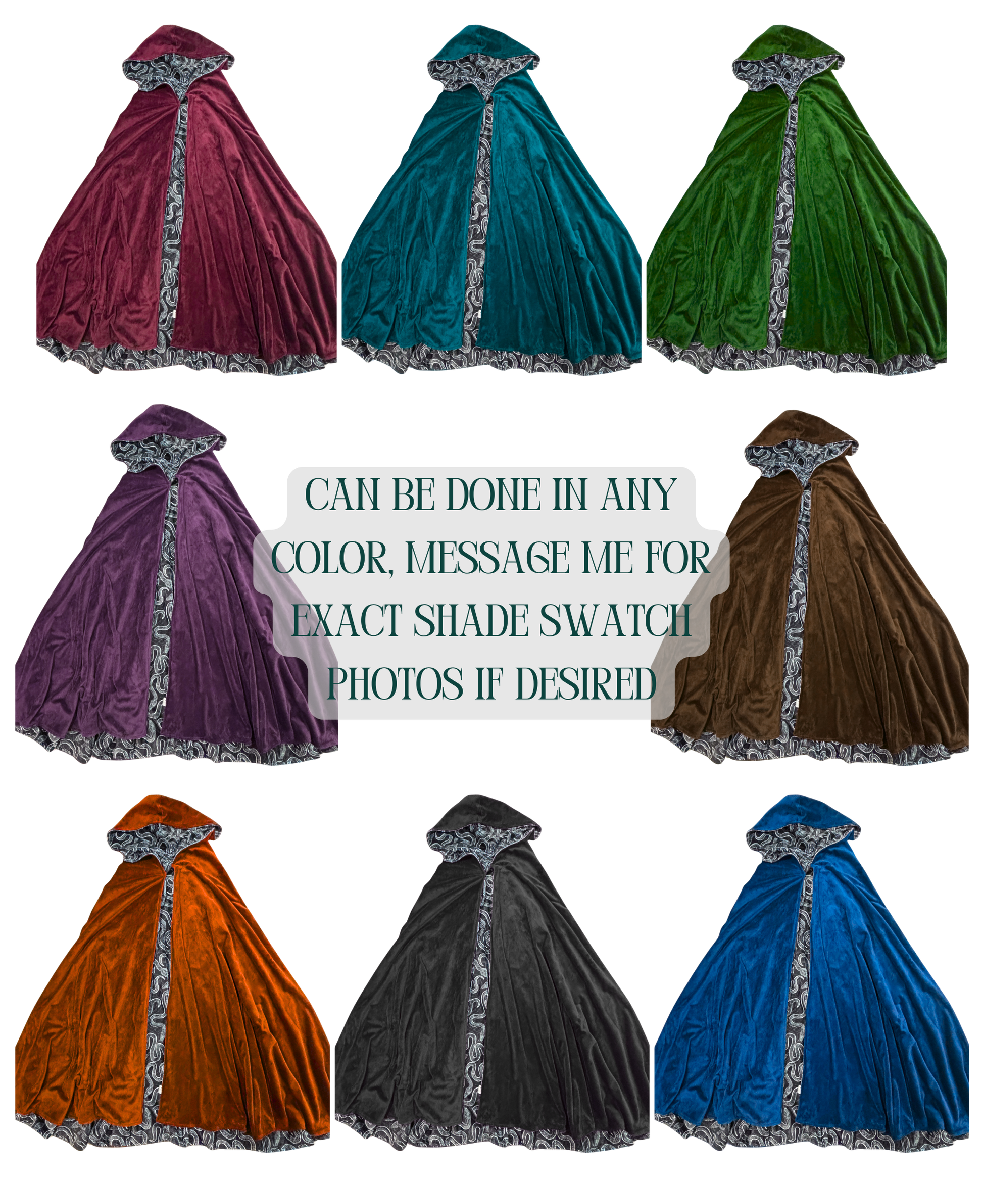 Experience cozy, whimsical luxury with our Standard Cloak. Made-to-order with your personal specifications, from soft, luxurious minky fleece polyester fabric. This double-sided cloak is perfect for any cozy occasion; let's Bring Cloaks Back.