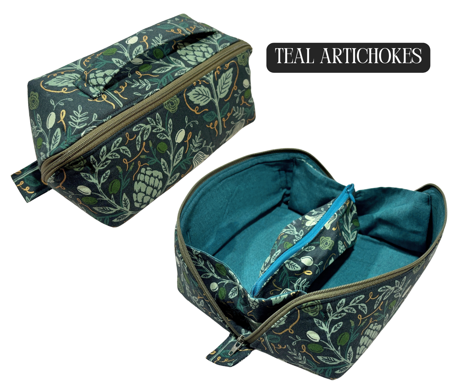 A versatile and compact toiletry bag for your makeup and accessories. The lay-flat design and built-in zip pouch allows for easy organization, and the durable cotton material ensures long-lasting use and washability. At 10"x4"x4" they can hold a surprising amount of gear! Whether toting meds or equipment for your chronic illness, or your makeup and a toothbrush for a sleepover, you can stay organized on-the-go with this essential travel companion.